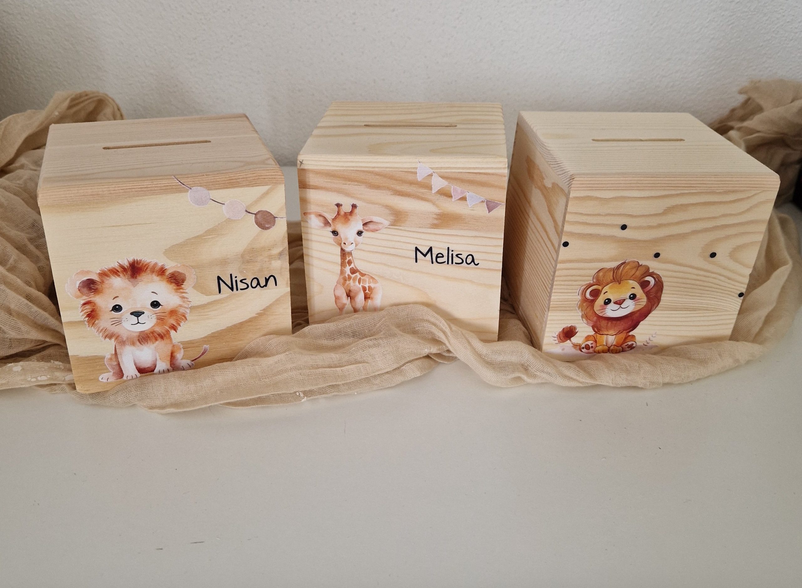 Unsere liebevoll gestaltete Holzspardose für Kinder ist nicht nur ein praktisches Sparbehältnis, sondern auch ein ganz persönliches Erinnerungsstück. Gefertigt aus natürlichem, hochwertigem Massivholz und versehen mit farbenfrohen UV-Drucken, wird jede Spardose zum einzigartigen Blickfang im Kinderzimmer.