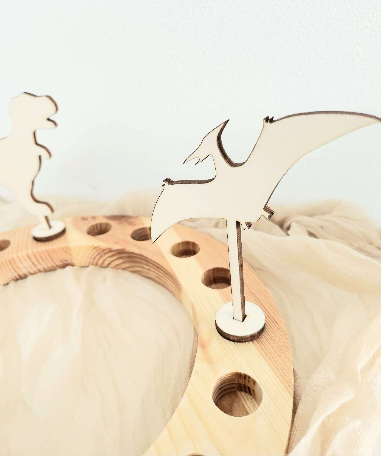 Tauchen Sie ein in die faszinierende Welt der Dinosaurier mit dem beeindruckenden Dino Set für den Grimms Kranz! Dieses umfangreiche Set beinhaltet einen majestätischen Tyrannosaurus, einen Pterosaurus, einen imposanten Triceratops, einen üppigen Farnbusch und sogar einen personalisierten Namen Ihrer Wahl. Jedes Stück wird sorgfältig aus hochwertigem 4-mm-Pappelholz gefertigt, um eine lange Lebensdauer und eine natürliche Optik zu gewährleisten.