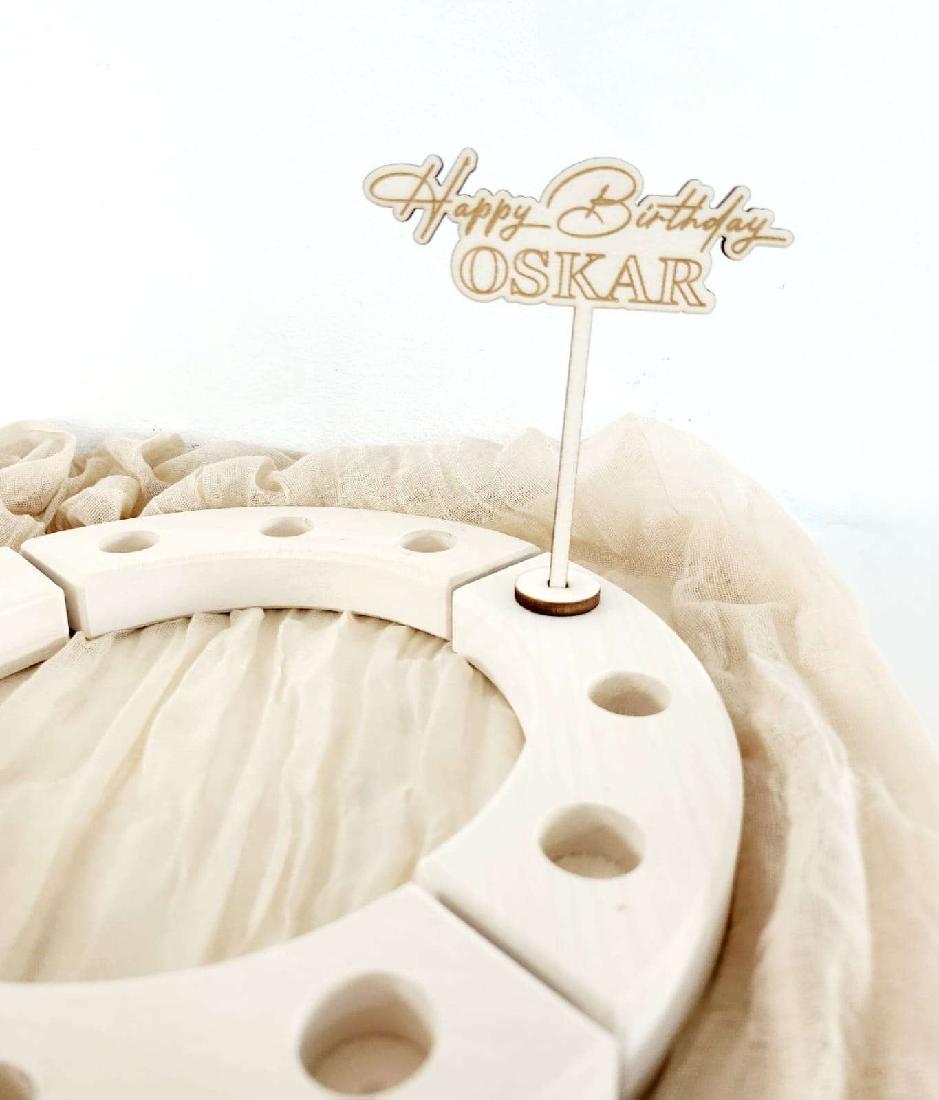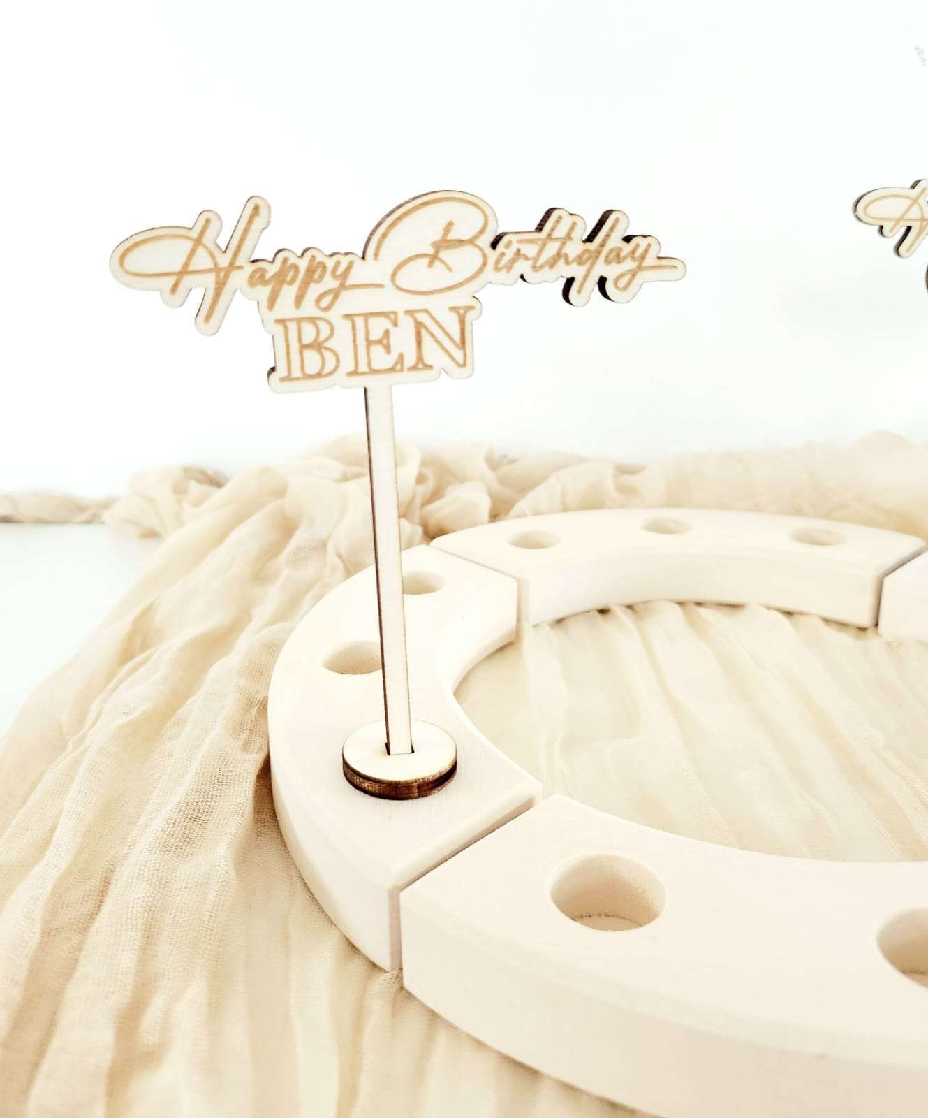 Personalisierte Happy Birthday Stecker mit Wunschname für den Grimms Kranz