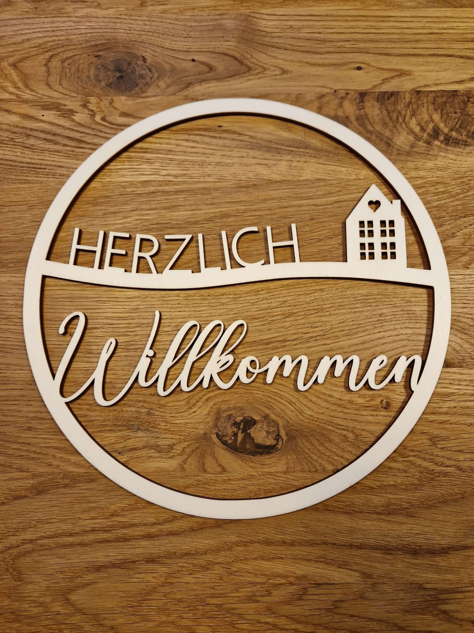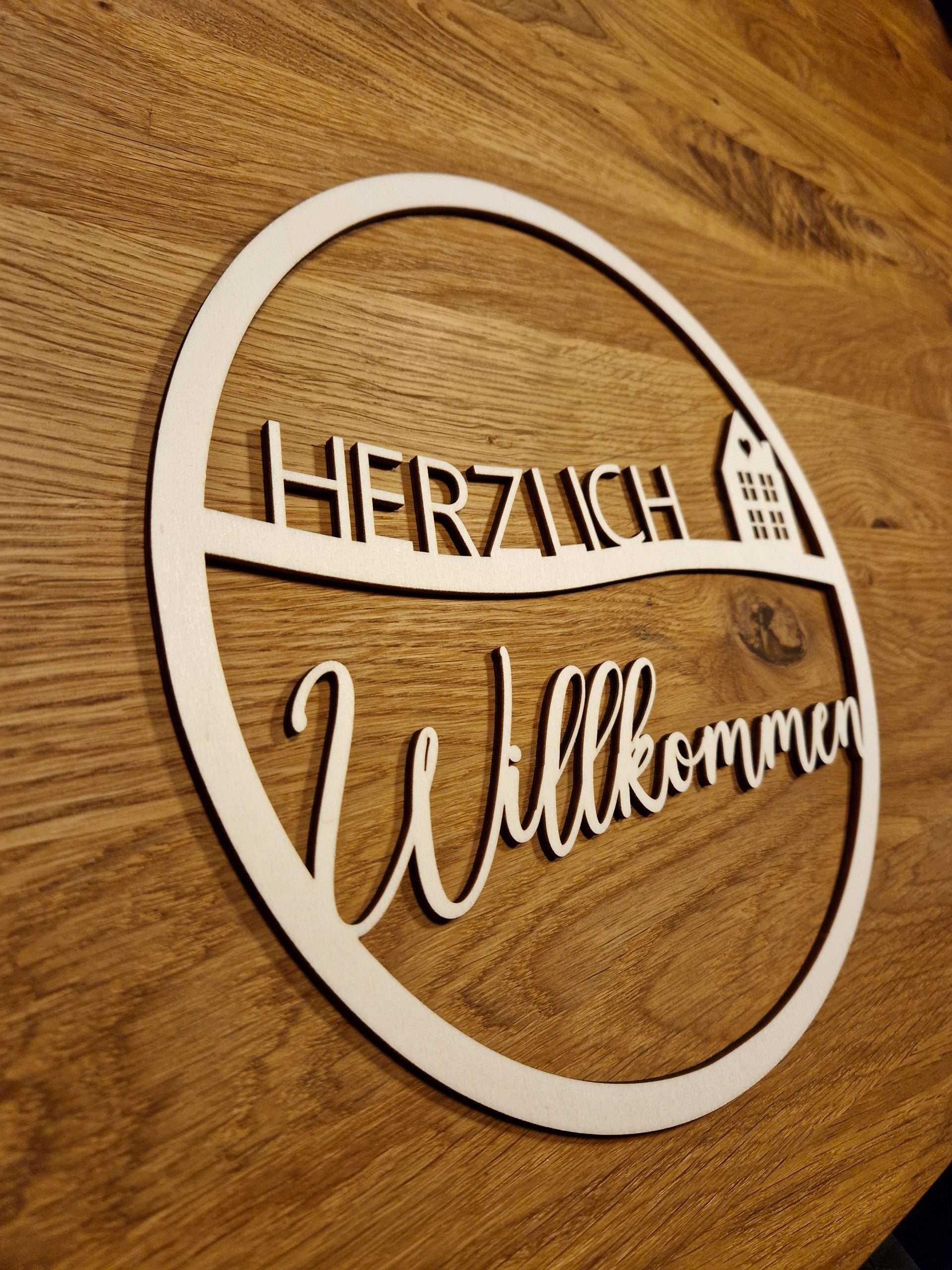 Das Willkommensschild aus Holz ist das perfekte Geschenk zum Einzug.