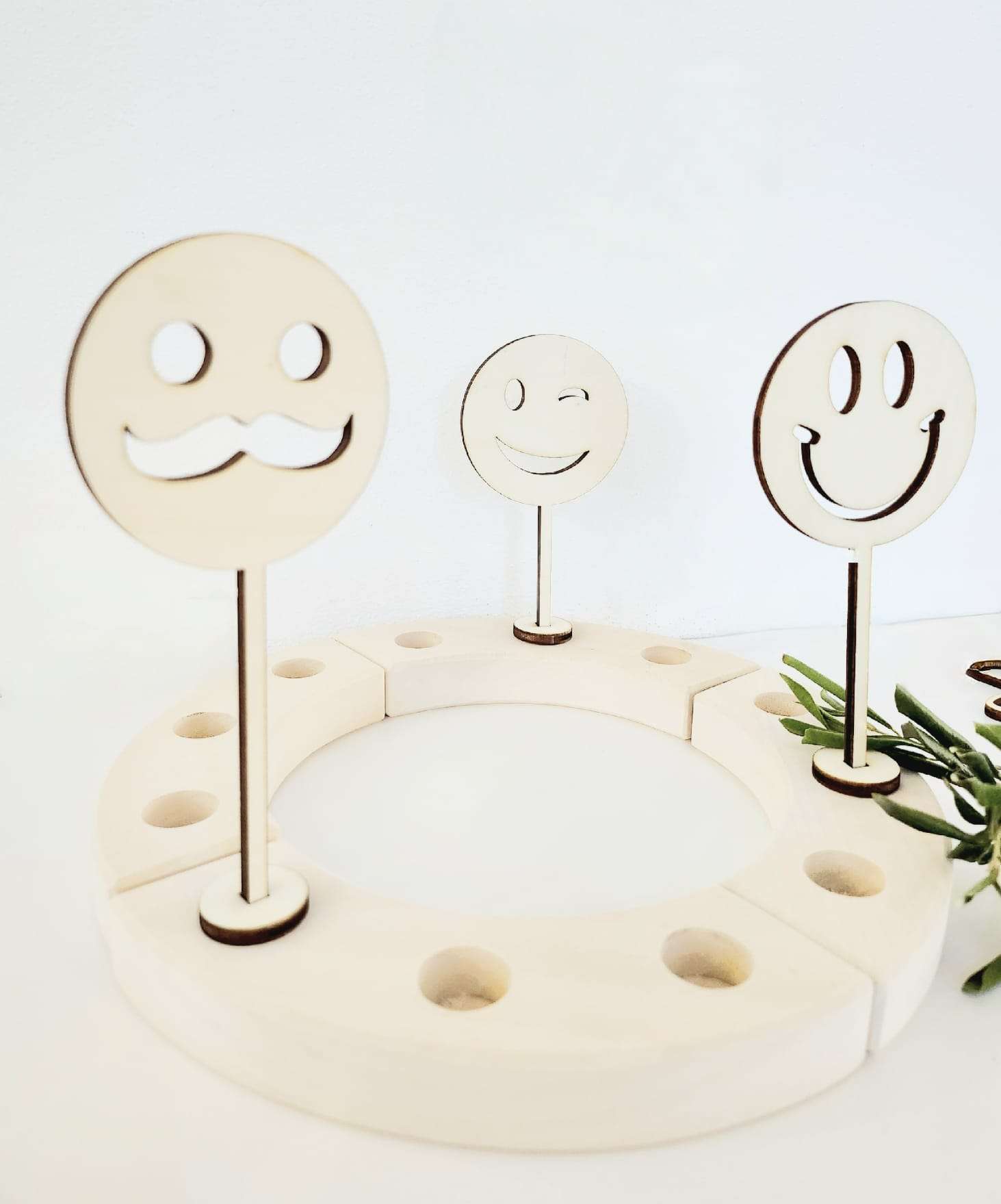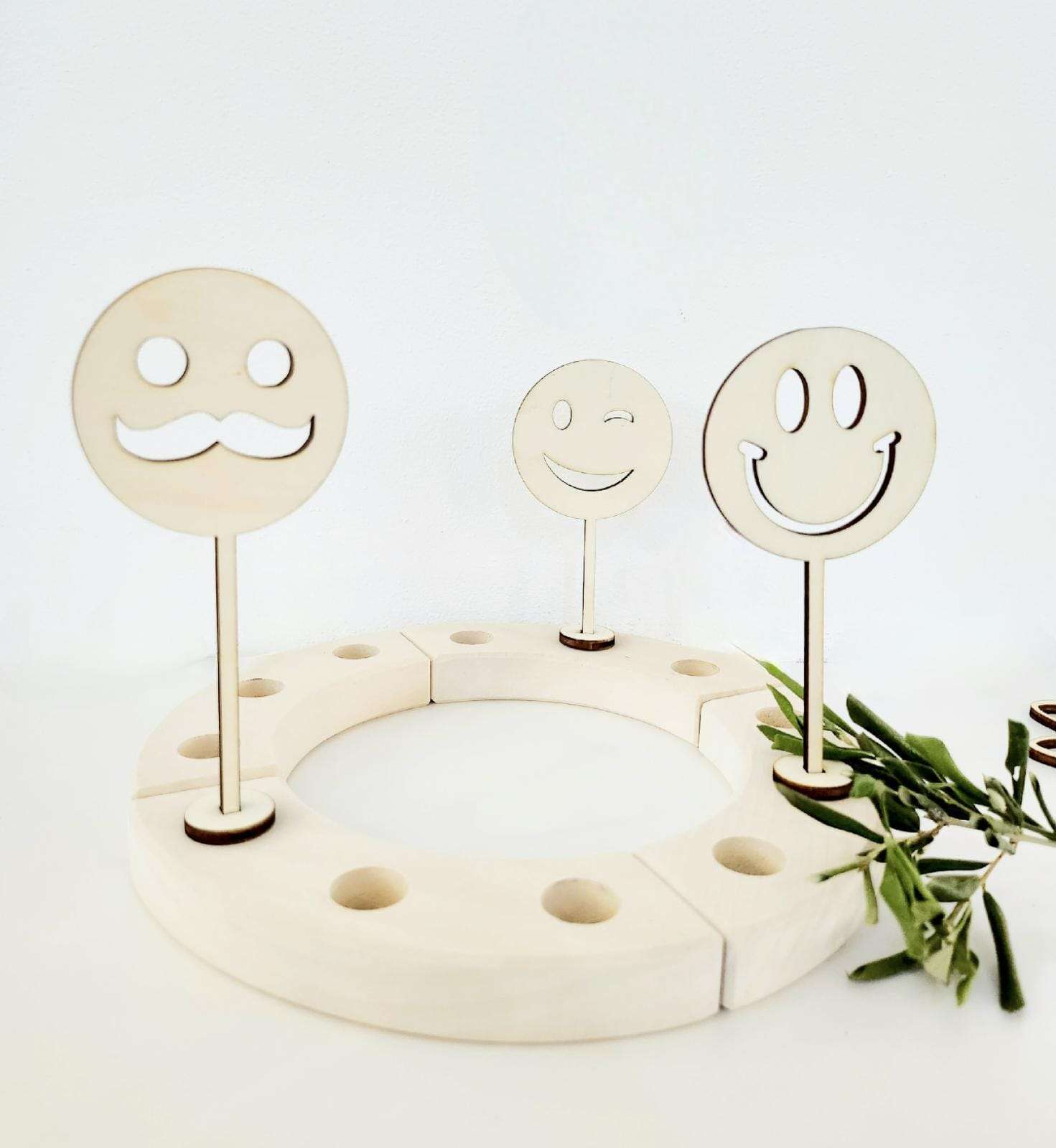 Entdecken Sie unsere einzigartigen und charmanten 3D-Smiley-Stecker für den beliebten Grimms Kranz. Diese entzückenden Stecker werden aus robustem 4 mm starkem Pappelholz gefertigt und verleihen Ihrem Kranz eine spielerische und fröhliche Note.