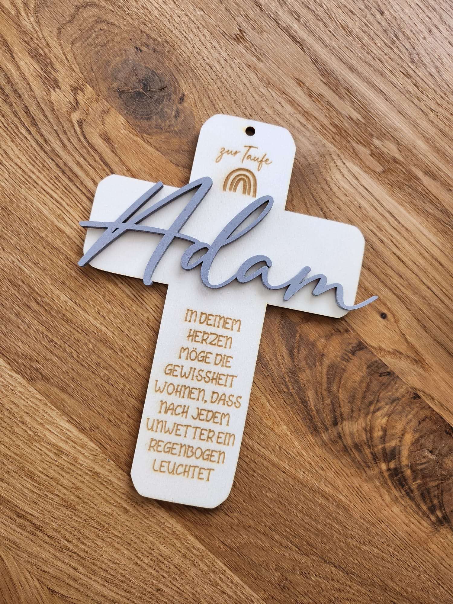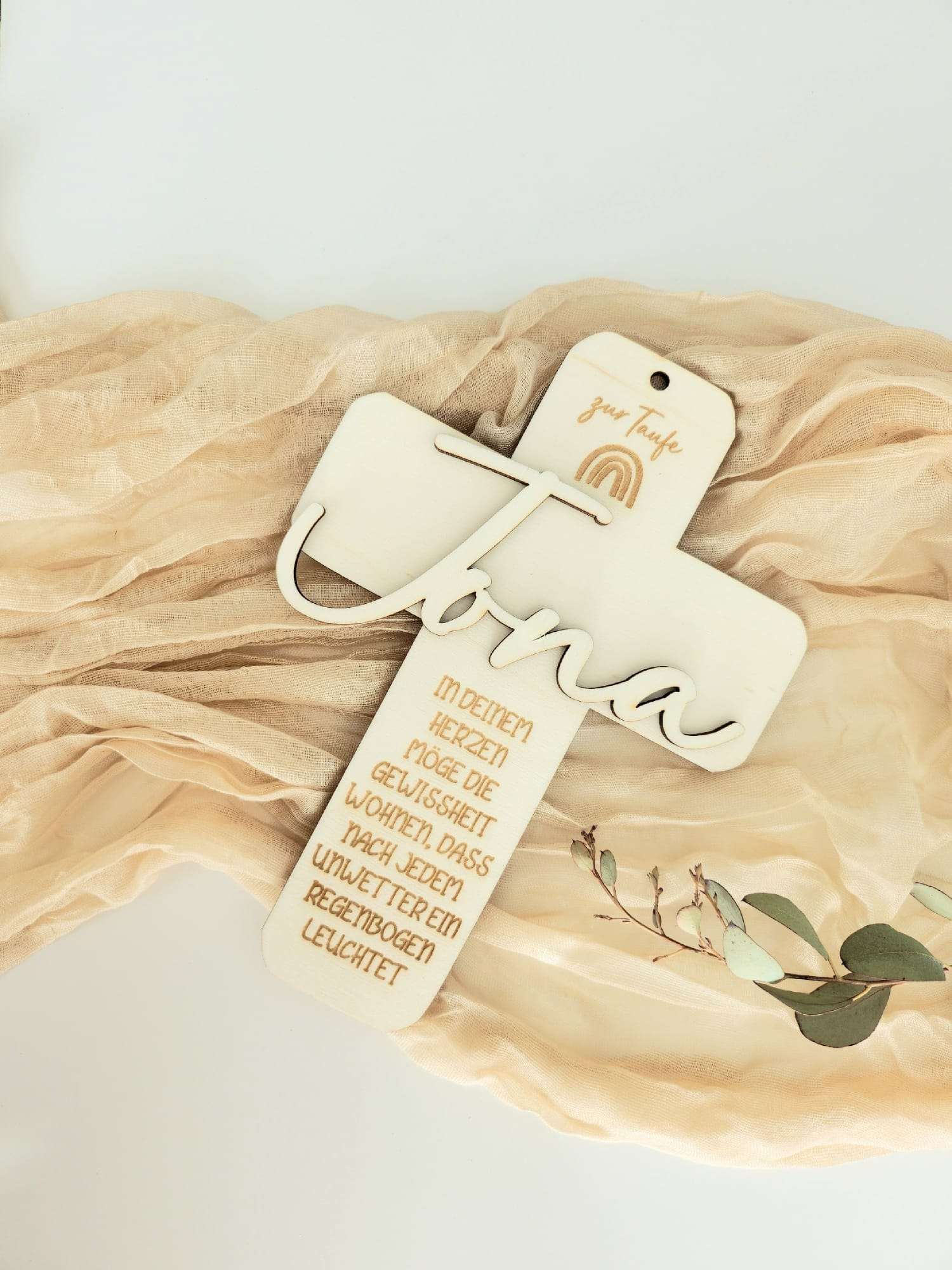 Unser Taufkreuz eignet sich sowohl als Wanddekoration für das Kinderzimmer als auch als Geschenk für Familie und Freunde. Es ist ein symbolträchtiges Objekt, das die Bedeutung der Taufe auf schöne Weise repräsentiert.