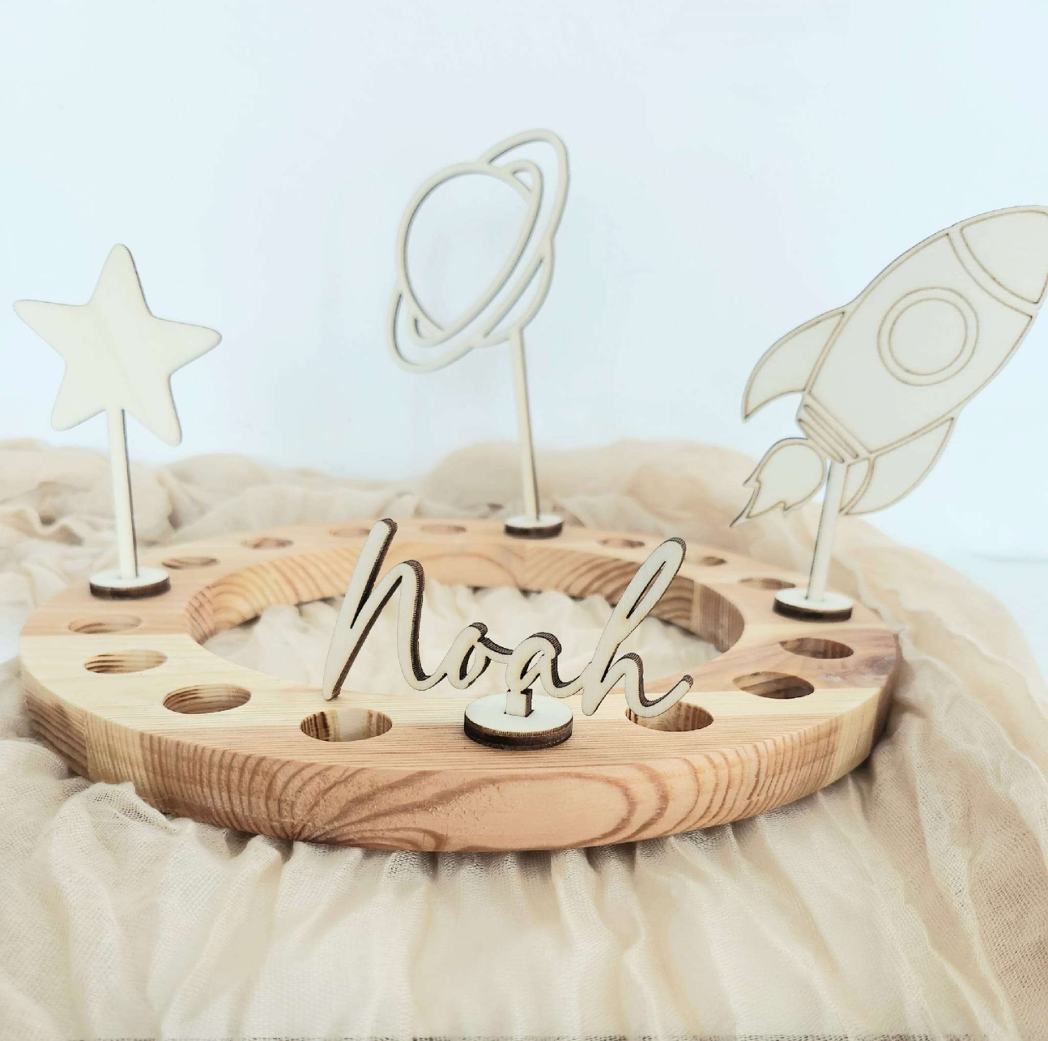 Entdecken Sie das faszinierende Weltall Set für den Grimms Kranz. Bestehend aus einer Rakete, einem Stern, einem Planeten und einem personalisierten Namen, verleiht dieses Set Ihrem Kranz einen intergalaktischen Zauber. Hergestellt aus 4 mm starkem Pappelholz und mit vier zusätzlichen Untersteckern ausgestattet, bietet es endlose kreative Möglichkeiten. Fördern Sie die Fantasie und die feinmotorischen Fähigkeiten. Ein perfektes Dekoartikel für Geburten, Geburtstage und besondere Anlässe. Tauchen Sie ein in die Weiten des Weltalls und lassen Sie Abenteuer beginnen!